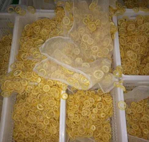 等待烘干完成后取出至冷卻即可進(jìn)行包裝了。某客戶實(shí)際烘干案例,其1000斤生的檸檬片,烘干后得700斤檸檬干,濕干比例為10:7,效果滿意。