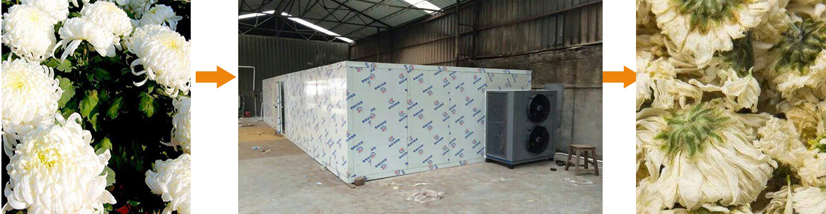 熱泵胎菊烘干機節能效率高、運行費用低,集多種功能于一身,除了胎菊的烘干加工外,還廣泛的應用于皇菊、油茶籽、玫瑰花、貢菊、滁菊、杭白菊、牡丹花、茉莉花、菊花、無花果、金花葵、玫瑰