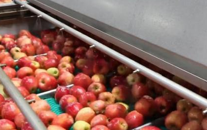 2、水洗:用平行毛輥清洗機(jī)沖洗蘋果,將蘋果上的殘留物及雜質(zhì)清洗干凈;